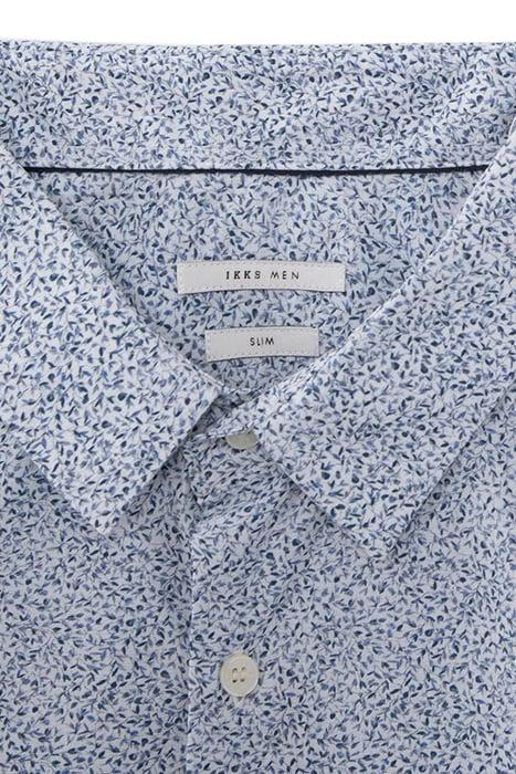 NAVY ORGANIC COTTON MICROLEAF MOTIF SLIM SHIRT