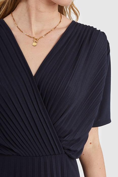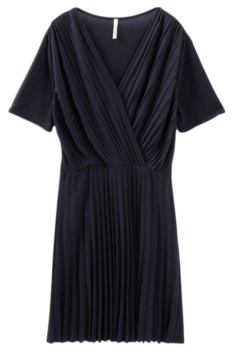 NAVY PIQUE KNIT PLEATED DRESS