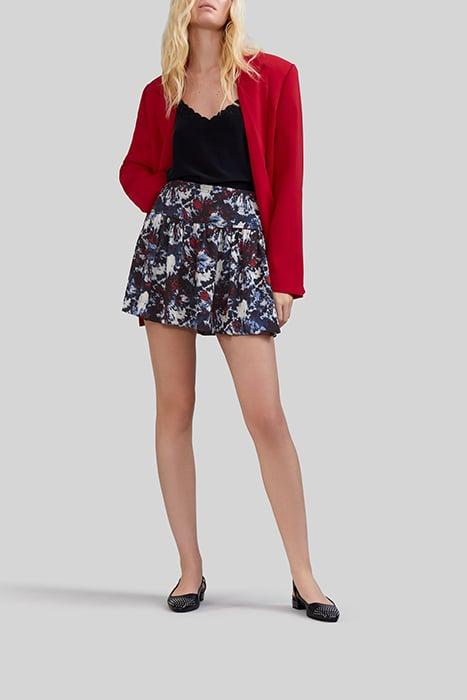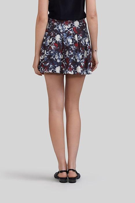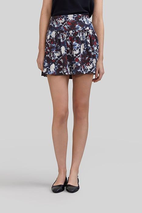 NAVY RECYCLED SHORT SKIRT WITH BATIK FLOWER PRINT