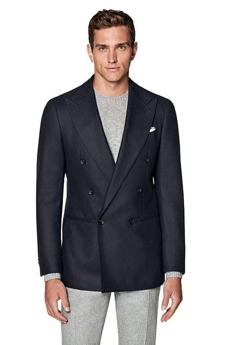Tailored To A Slim Fit, This Bold Navy Havana Blazer Features A Peak Lapel, Pleated Shoulder And Jetted Pockets. Cut To A Double-Breasted Style, If Features A Slightly Lowered Closure Setting, Giving It An Understated Casual Touch.