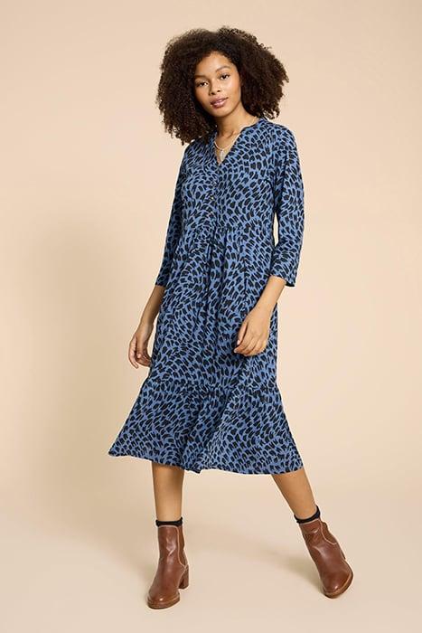 Redefine your wardrobe with the Naya Jersey Dre Blue Printed, an essential staple that merges function with fashion.