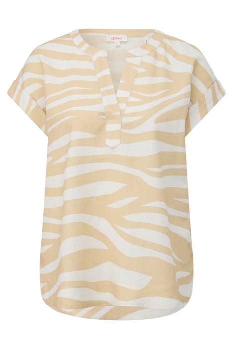 Feature: High Quality, Neck: Tunic Neck, Material: Linen Blend, Pattern: Animal Motif, Sleeves: Oversized Shoulders, Fixed Turn-Up, Fit: Regular Fit, Fabric: Tissue, Hem: Rounded Hem, Hem With Side Slits.