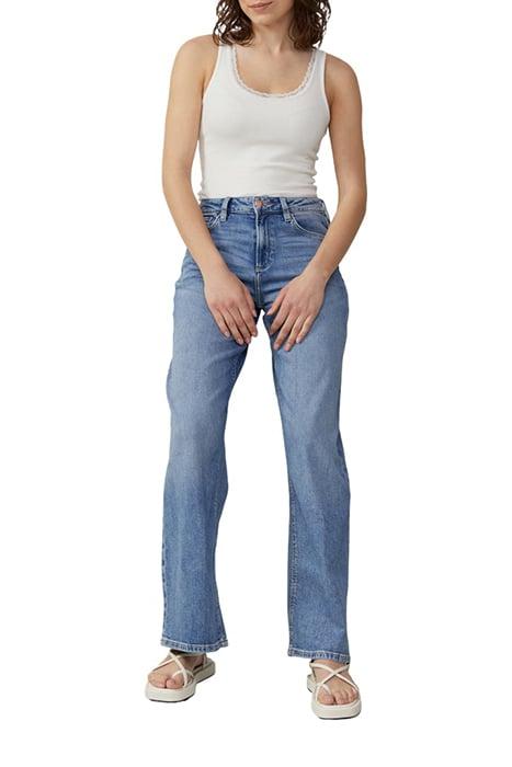 Band: Met Riemlussen Bandhoogte: High Rise Beenlengte: Regular Broekmodel: Slim Fit Eigenschap: Heerlijk Zacht, Zacht, Elastisch Gelegenheid: Casual Materiaal: Katoenmix Pijpen: Wide Leg Sluiting: Ritssluiting, Knoop Stijl: Casual Stof: Denim Zak: 5-Pocket-Model
