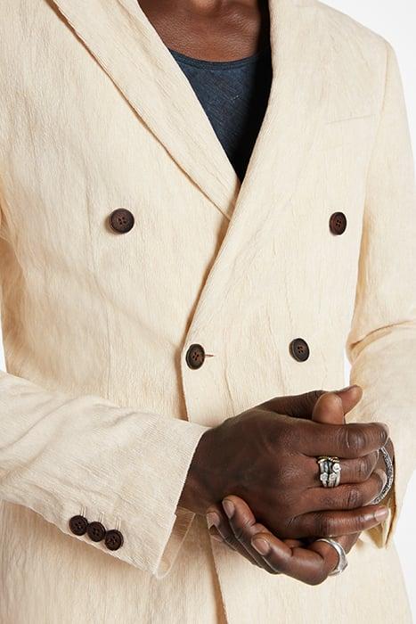 Experience The Fusion Of Tradition And Modernity With Our Namo Jacket. Tailored With A Sharp Peak Lapel And An Elegant Double-Breasted Design, This Jacket Exudes Sartorial Finesse. Enhanced By Side Vents For Added Comfort And Movement, The Italian Corduroy Fabric Elevates Its Tactile Appeal. A Tumbler-Washed Finish Graces Its Surface, Offering A Natural Vintage Look That Speaks Of Timeless Elegance And Charm.