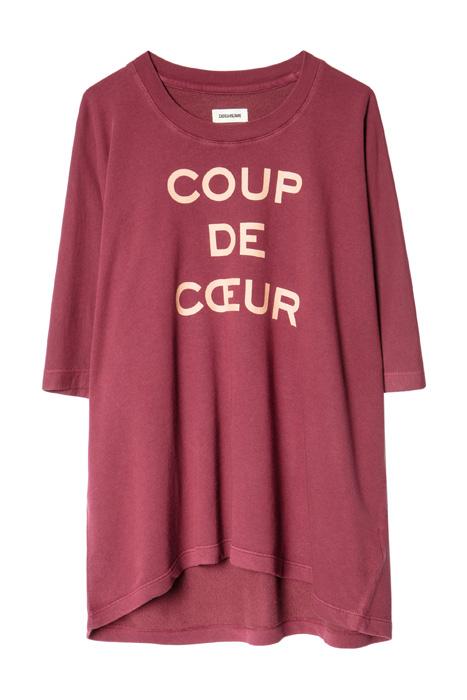 Zadig&Voltaire women’s burgundy sweatshirt, loose-fitting, short sleeves, “COUP DE COEUR” slogan on front.