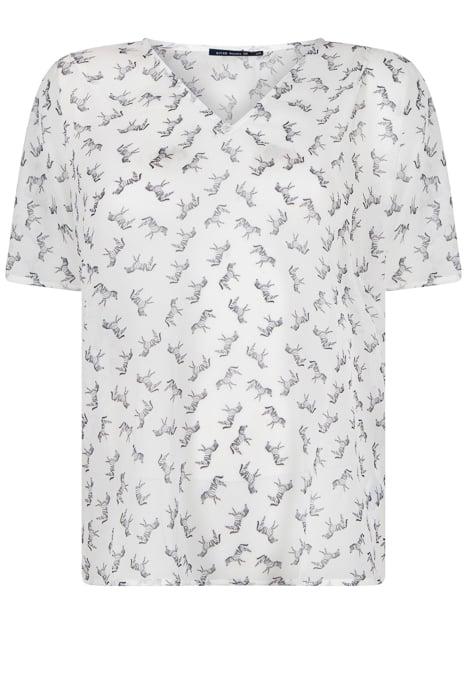 WIDE V-NECK SHIRT - WITH BUTTERFLY SLEEVES. WASH INSIDE OUT - MAXIMUM WASHING TEMPERATURE 30 °C - VERY MILD PROCESS - REMOVE PROMPTLY FROM MACHINE AFTER WASHING - DO NOT BLEACH - DO NOT TUMBLE DRY - IRON AT LOW TEMPERATURE - DO NOT DRY CLEAN 100% POLYESTER