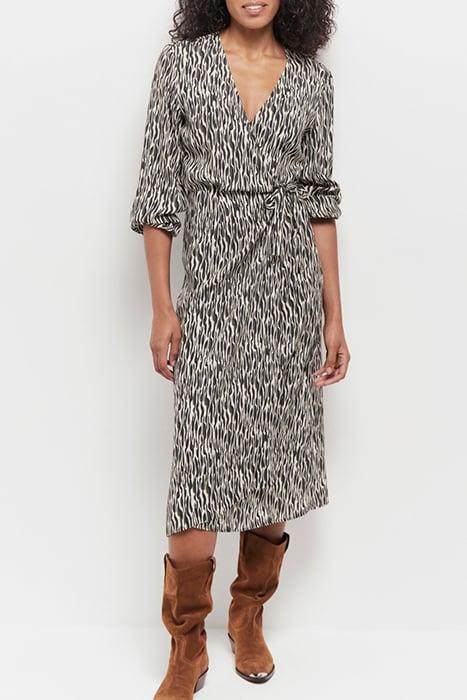 The Animal Motif Never Stops Reinventing Itself. Here, On The Reachy Dress, It'S The Abstract Zebra Print That Takes Centre Stage, In A Cameo Of Beige And Green. A Long, Wrap Dress In Lenzing™ Ecovero™ Viscose Moroccan Crepe From Sustainably Managed Forests.