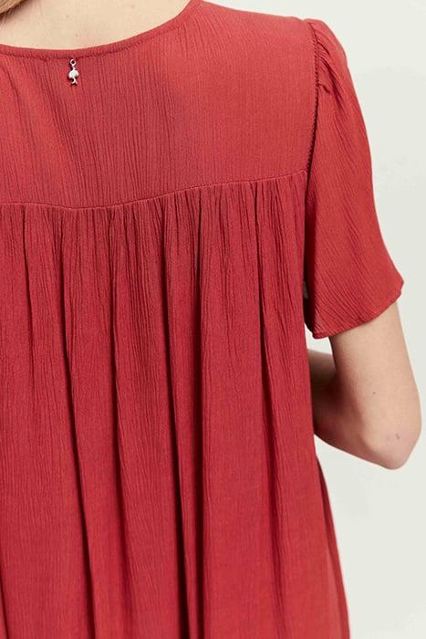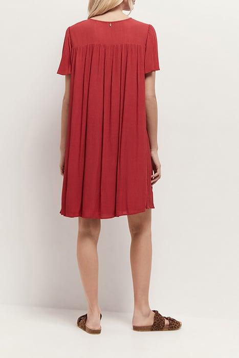 REVIA - CREPE CHILIPEPPER DRESS WITH TONE-ON-TONE EMBROIDERY