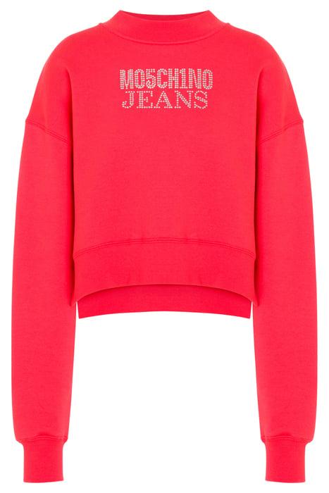 RHINESTONE LOGO DIAGONAL COTTON SWEATSHIRT PINK