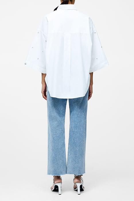 RHINESTONE POPLIN POPOVER SHIRT LINEN WHITE
