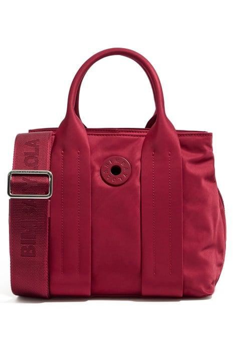 Technical Fabric Crossbody Tote Bag In Red. Small Model With Zip Fastener And Double Strap; Logo Fabric Crossbody Strap And Two Handles. Exterior Customized With Metal Chimo Logo.