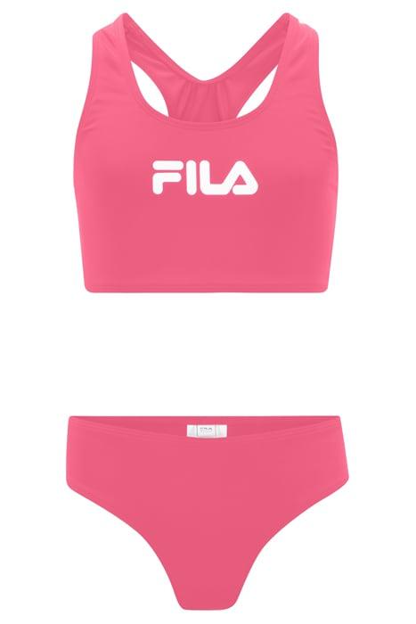 Sporty Bikini Set With A Racer Back For Teen Girls. In A Single Jersey Lycra Quality And Branded With A Large Fila Linear Logo Across Chest. Combined With A Regular Pair Of Bottoms.