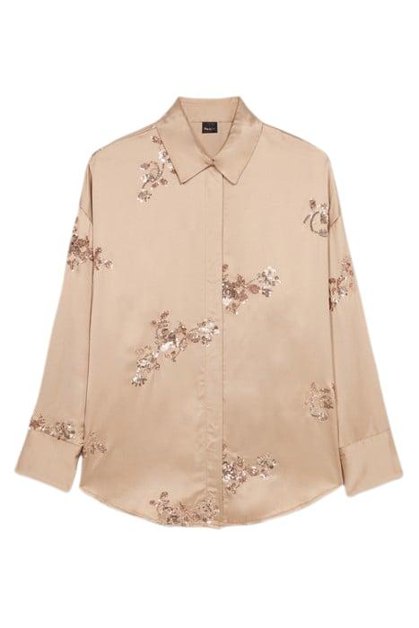 SATIN SHIRT WITH SEQUIN EMBROIDERY BEIGE