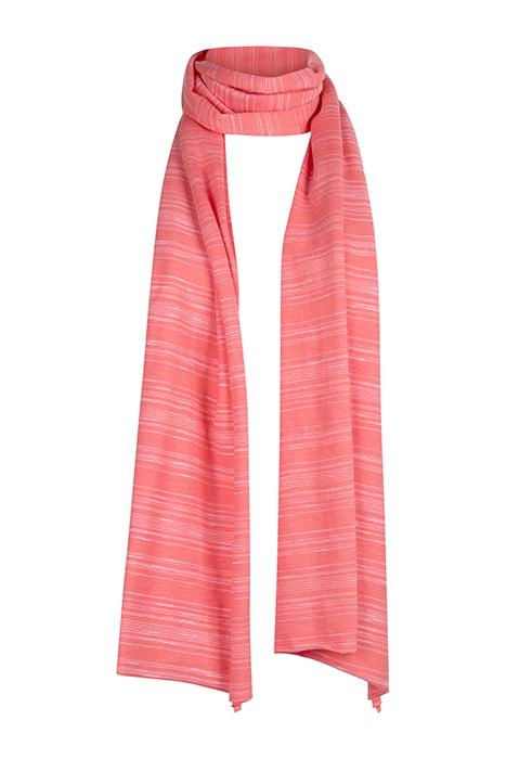 Deze gestreepte sjaal wikkel je snel even om als het buiten afkoelt. De sjaal is gemaakt van een zachte jersey kwaliteit en ideaal om je persoonlijke stijl te accentueren. Naast wit is de sjaal ook beschikbaar in het roze.