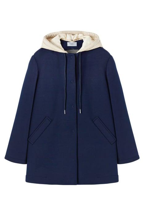 SCUBA FABRIC COAT WITH DETACHABLE HOOD BLUE