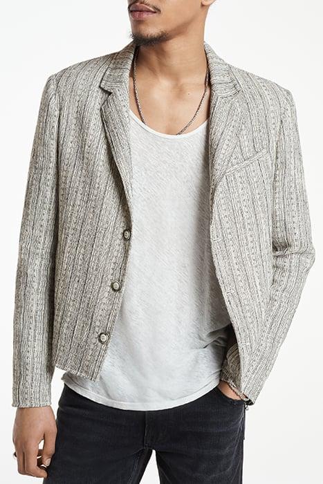 The Torino Jacket Is Vintage-Inspired. The Cotton Hemp Fabric Is From Italy And Shaped To An Angular Silhouette, Accentuated With Irregular Stripes Integrated Into The Material.