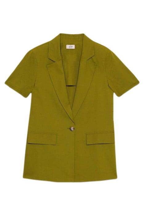 Linen-Blend Fabric Blazer, Short Sleeves, Single-Breasted Fastening, Faux Flap Pockets At The Front, Made In Italy.