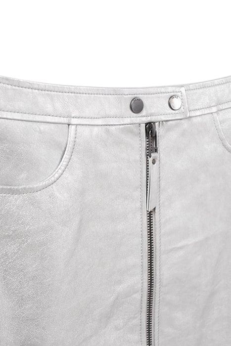 SILVER LEATHER ZIPPED SHORT SKIRT