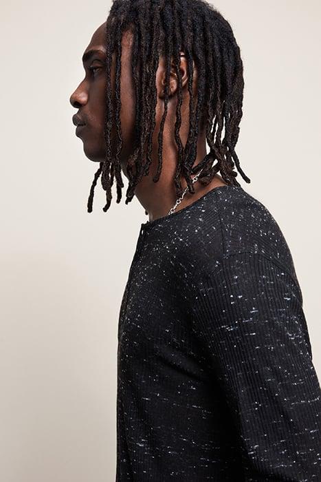 SLIM FIT LS MELANGE NEP RIB HENLEY BLACK