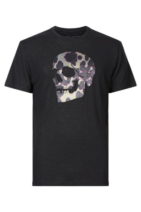 Applique Skull Made With A Cheetah Print Fabric And Mixed Embroidery Threads