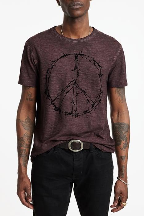 Peace Is Our Signature Statement, Boldly Proclaimed In Our New Flocked Artwork. This T-Shirt Design Has Been Reinvented And Infused With An Extra Dose Of Attitude, It'S A Classic Silhouette Reborn.