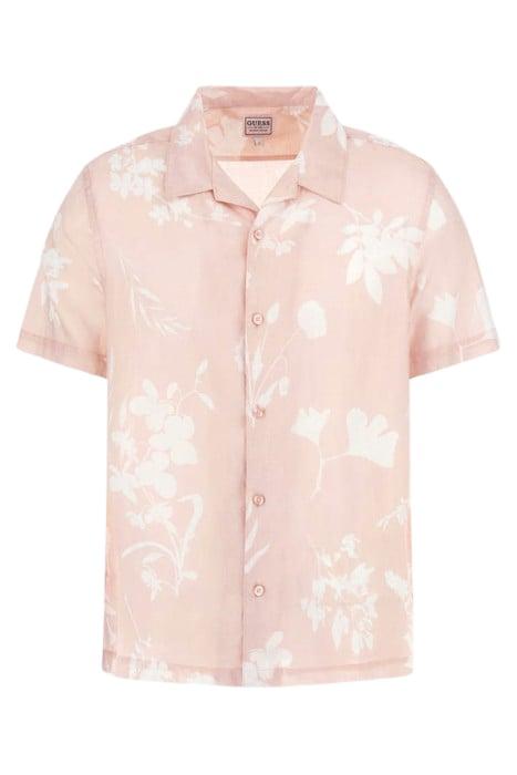 GUESS ECO SS ISLAND LINEN CUTOUT SHIRT WATERCOLOR CUTOUT TA
