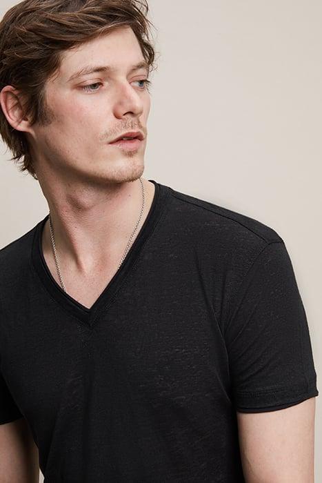 Subtle Details Are What Set Sophisticated Wardrobe Essentials Apart From The Rest. This Premium Linen V-Neck Features Hand-Cut Jersey Details At The Collar And Sleeves For A Rugged, But Polished Appearance.