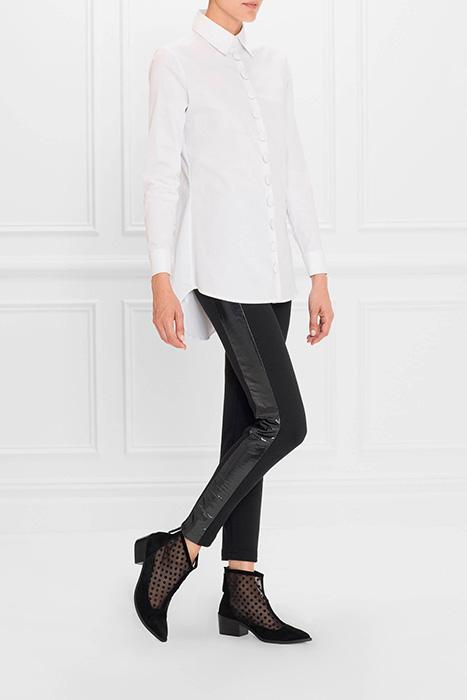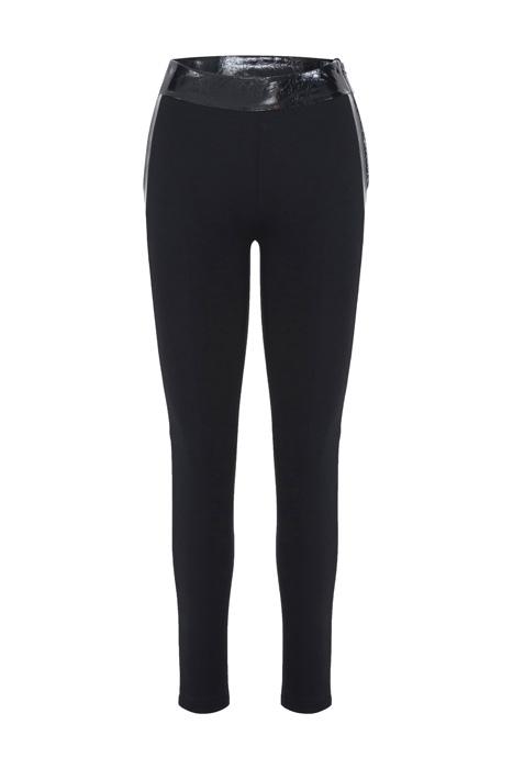 The Suzon Are Full Length Leggings In Black. These Mixed Material Leggings Feature An Invisible Side Zipper And A Patent Leather At The The Waist Yoke And Along The Side Panels, Giving To This Style A 70’S Inspired Look. - Black Leggings Enhanced With Patent Leather Details