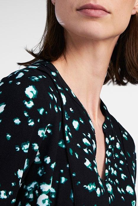 Geef je garderobe wat vrouwelijke flair met deze all over print top. De top heeft een V-hals en als detaillering strikjes op de mouwen. Combineer het op een broek in de kleur emerald voor een stijlvol geheel.