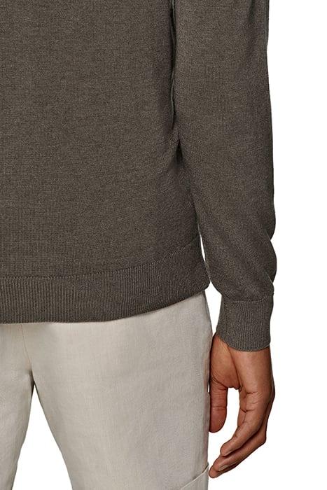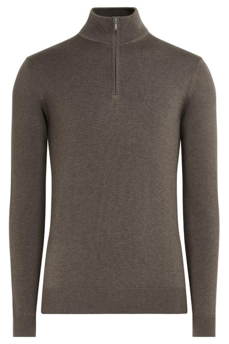Not Quite A Sweater, Not Fully A Cardigan—This Half-Zip Knit In A Versatile Taupe Shade Brings You The Best Of Both Worlds For An Easy Transitional Look.