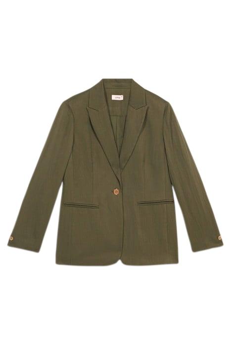 Flowing Tencel Blend Fabric Blazer With Crinkled Effect, Inner Shoulder Pads, Mottled Single-Breasted Button Closure, Front Welt Pockets And Light Lining