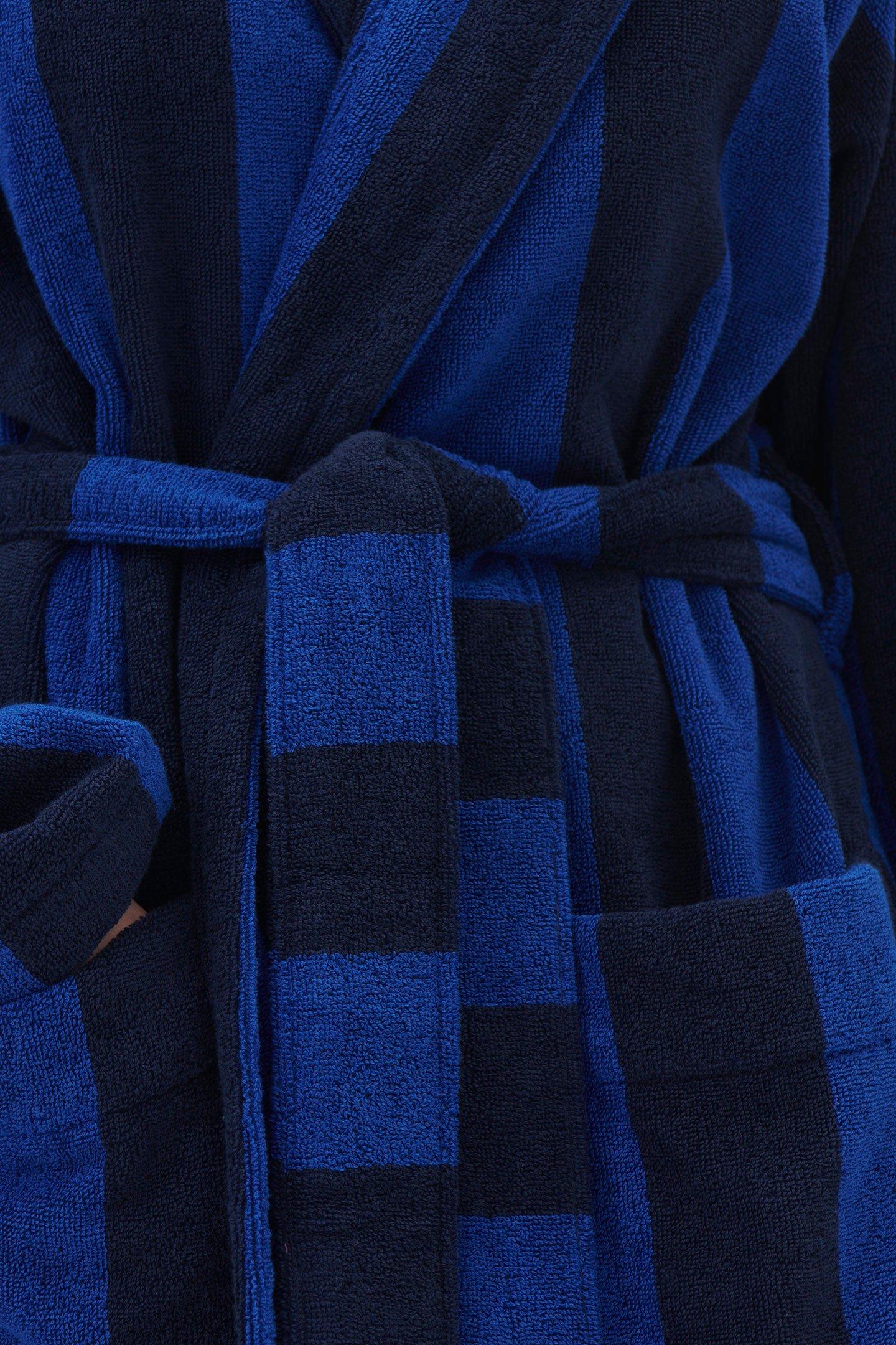 UNISEX HOODED BATHROBE NAVY BLOCKSTRIPES