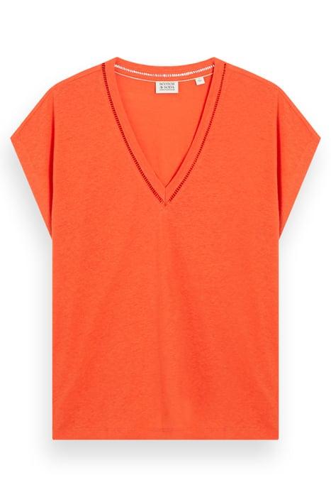 V-NECK LADDER DETAIL LOOSE FIT T-SHIRT CANDY RED