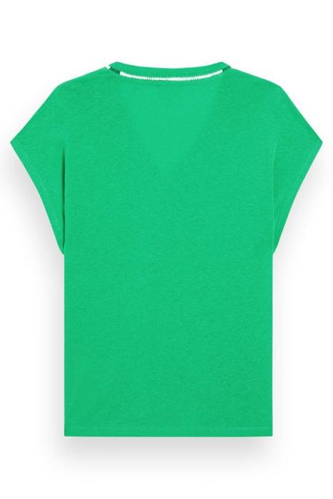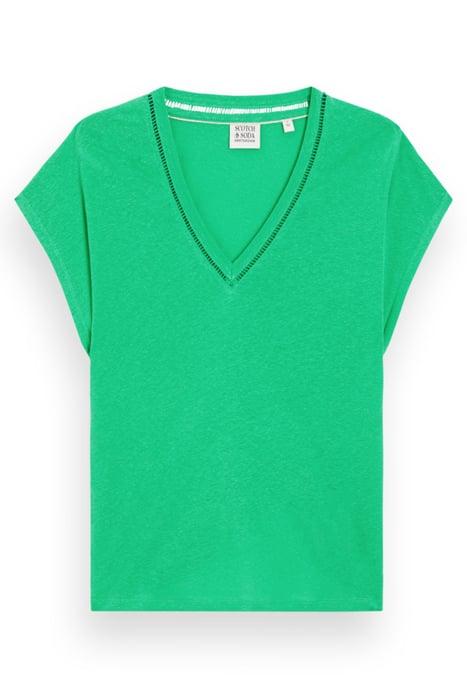 V-NECK LADDER DETAIL LOOSE FIT T-SHIRT SCUBA GREEN