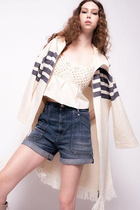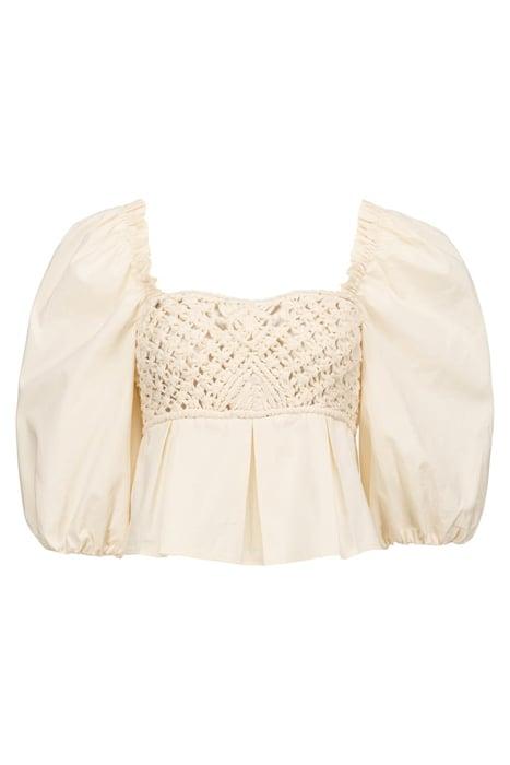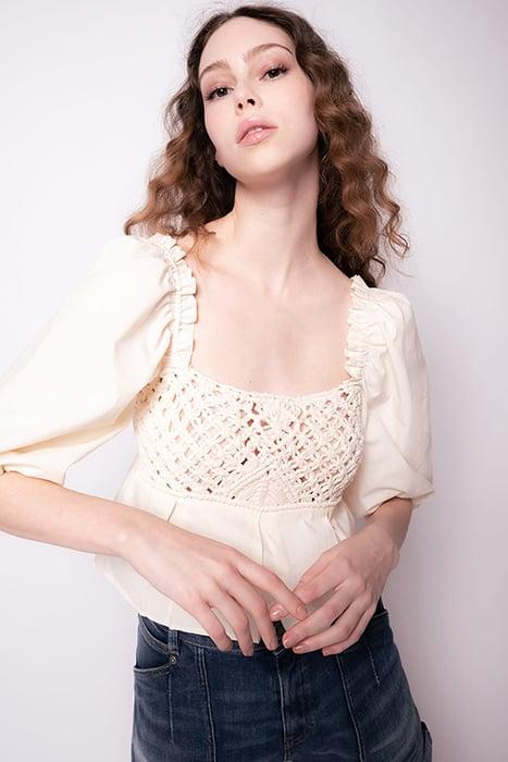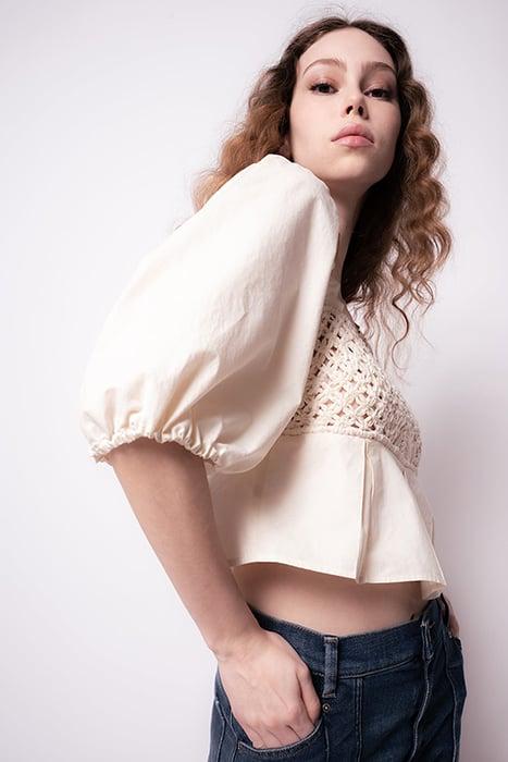 VIGONE TOP POPELINE CON INTREC BEIGE/CREAM