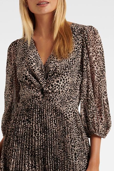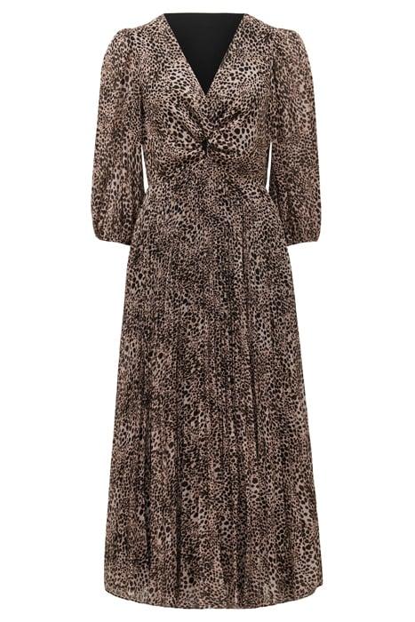 VIVIANA TWIST FRONT PLEATED MIDI SEPIA LEOPARD