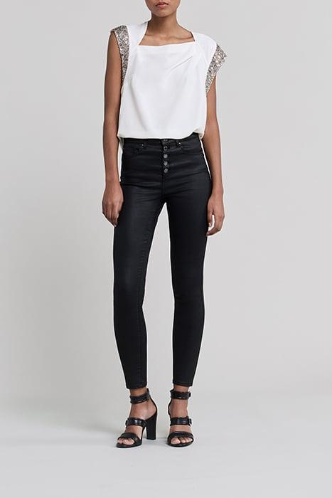 WHITE TOP WITH BEADS AND SEQUINS ON SHOULDERS
